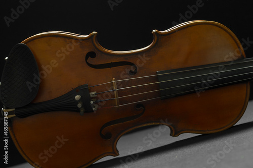 © fotofabrika, Fototapeta premium Old violin on a black background