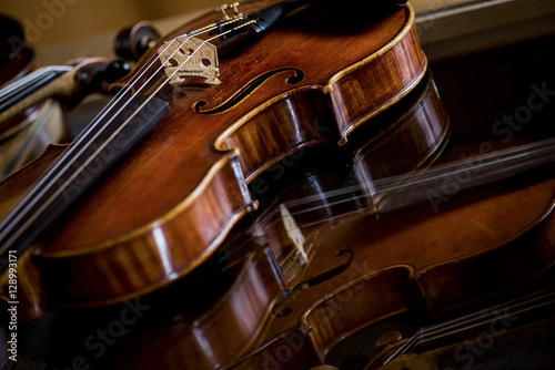 © Kristian Schark, Fototapeta premium old violin on glas desk
