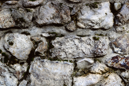 © Domingo, Fototapeta premium old wall background with big gray stone bricks weathered texture