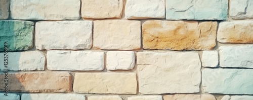 © Sladjana, Fototapeta premium Old wall background with stained aged bricks light color, vintage,