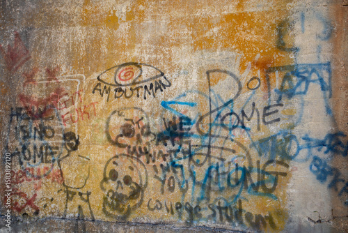 © Braden, Obraz premium Old wall covered with graffiti
