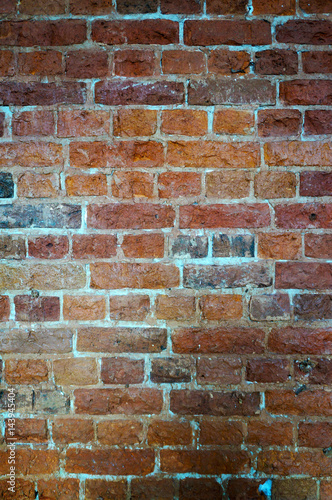 © elen_studio, Naklejka premium Old wall of red bricks, vintage texture