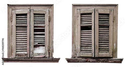 © MyIsolated, Fototapeta premium old weathered closed wooden windows collection isolated on white background