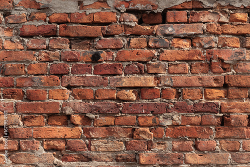 © Tohamina, Obraz premium Old weathered red brick wall texture background