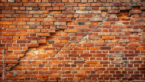 Naklejka premium Old weathered red brick wall with visible damage and cracks , weathered, red,...