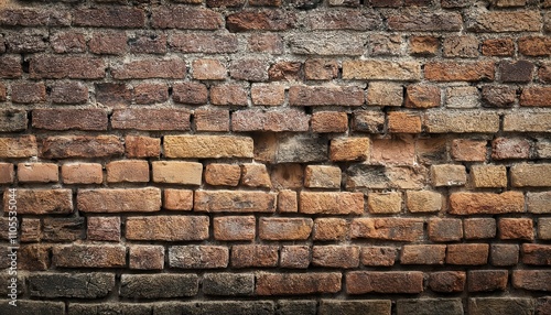 © foreverstock, Fototapeta premium Old weathered wall made of old red bricks