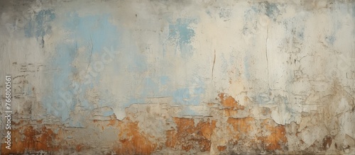 Fototapeta premium Old weathered wall showing signs of deterioration with peeling blue and white paint layers