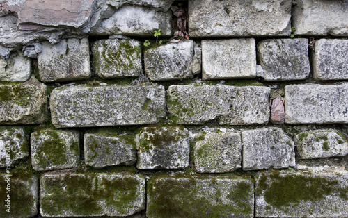 Fototapeta premium Old White Brick Wall With Moss Can Use For Background