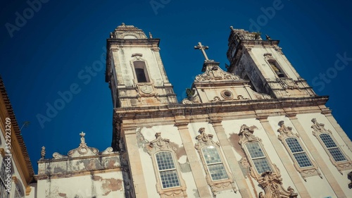 © Oz Rao, Fototapeta premium Old white church with damage paint on wall