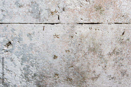 Obraz premium Old white concrete wall with black stains and deep crevice from left to right...