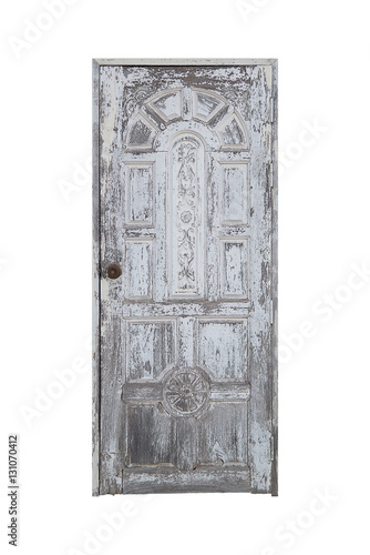 Fototapeta premium Old white door closed isolated on white with clipping path.