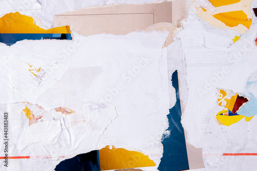 Fototapeta premium Old white grunge ripped torn collage posters creased crumpled paper placard...