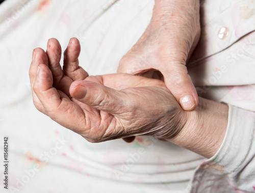 © vbaleha, Fototapeta premium Old woman measuring her pulse