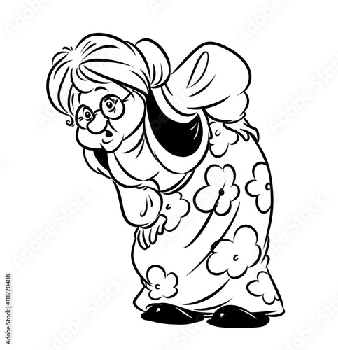 © efengai, Fototapeta premium Old woman rheumatism cartoon contour illustration isolated image