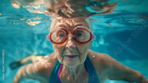 Fototapeta premium Old woman swimming, exercising, health concept