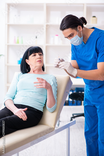 Obraz premium Old woman visiting male doctor for plastic surgery