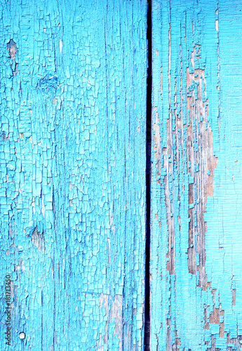 © johndwilliams, Obraz premium Old Wood Peeling Blue Paint
