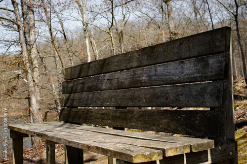 © JCL Aerial Services, Fototapeta premium old wooden bench in the park