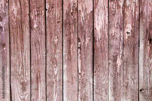 Naklejka premium Old wooden boards with peeling paint. Old background. Textured planks of oak and pine. Bright colours. Natural aging of the material.