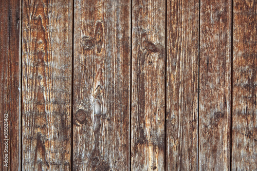 © Georgii, Naklejka premium Old wooden boards with peeling paint. Testura from old boards with blue and red paint. Copy space, wooden background