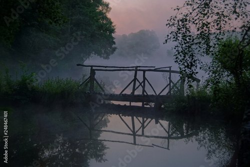 © Optikus, Fototapeta premium Old wooden bridge at sunrise