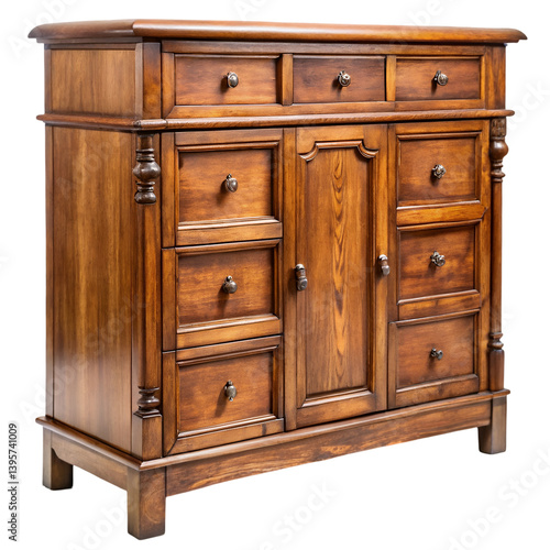 © NorStock, Fototapeta premium Old wooden cabinet dresser isolated on transparent background
