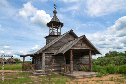 Fototapeta premium Old wooden church. Film set in the Loskovitsy (Loskovskoye) tract. Pskov region, Russia
