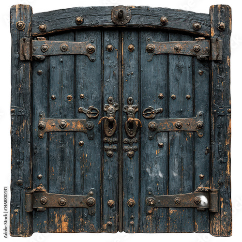 © 3D STUDIO, Fototapeta premium Old wooden door with iron hardware vintage entrance antique architecture on transparent background