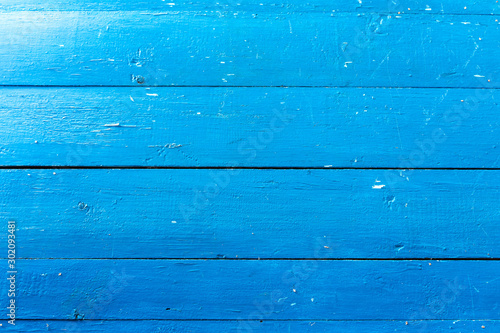 © Kate, Obraz premium old wooden fence blue paint texture boards. Background