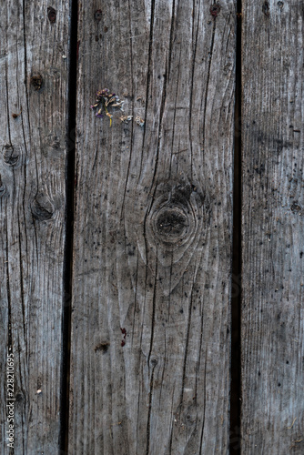 © janaland, Naklejka premium Old wooden floor with small dry flower on it.
