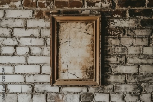 © Adobe Contributor, Naklejka premium old wooden frame on whitewashed brick wall
