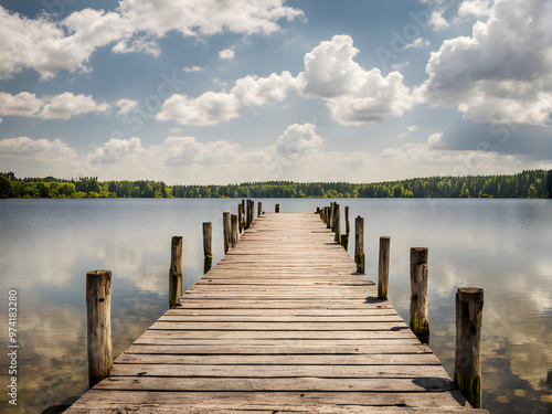 © Nyetock, Fototapeta premium old wooden jetty at a lake