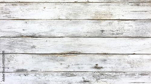 © Jumpingsack, Obraz premium Old wooden plank wall painted with white peeling paint. Rustic background.