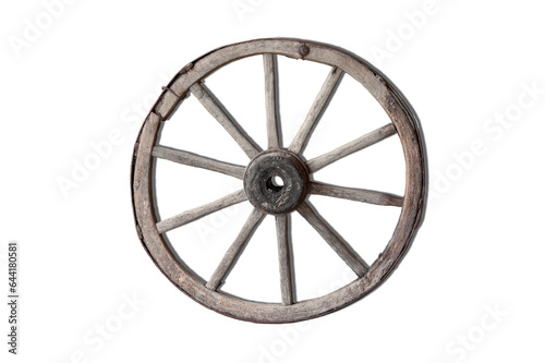 © Fydorov, Fototapeta premium Old worn out one wooden wheel from a cart. PNG.