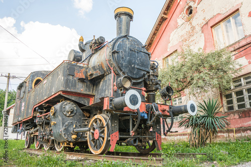 © Pompiliu, Naklejka premium Old Yugoslavian locomotive near old train station