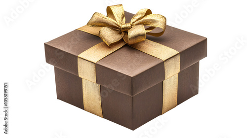 © Nesham, Obraz premium olden gift box with golden ribbon isolated on white background