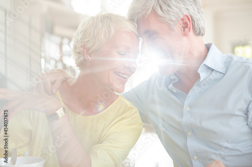 © KOTO, Obraz premium Older couple hugging with coffee cup