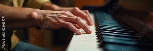 Fototapeta premium Older hands gently positioning younger hands on piano keys , development, care