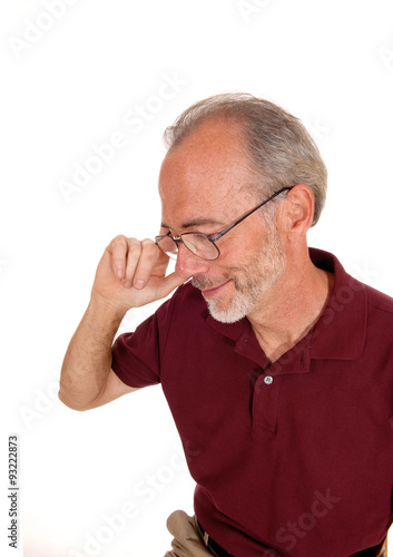 Obraz premium Older mal looking down in portrait.