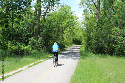 © John, Fototapeta premium Older man riding a bicycle at Blue Star Memorial Woods in Glevniew, Illinois
