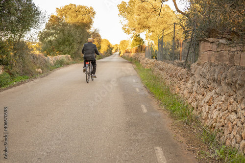 © Nemesio, Fototapeta premium Older man with his back turned taking a bike ride