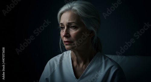 © Анастасия Макевич, Naklejka premium Older woman in white clothes with sad expression