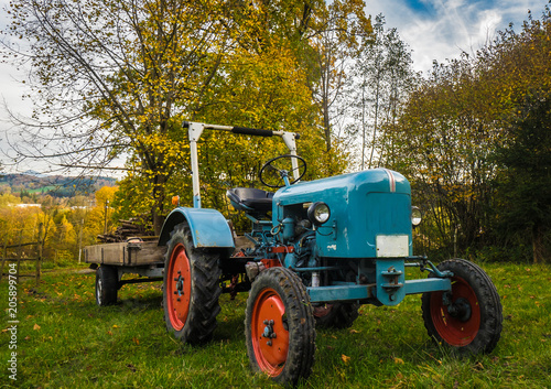 © sajgak, Naklejka premium oldtimer bulldog tractor sunset shot