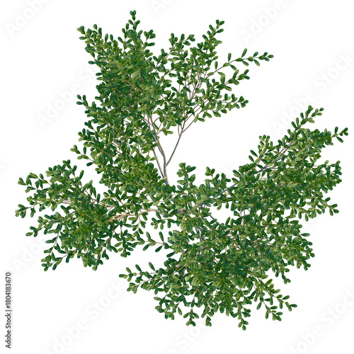 Obraz premium Olea europaea Wilsonii tree plan, top view, cutout, transparent background, 4k isolate, Lush green tree canopy viewed from above, perfect for design projects