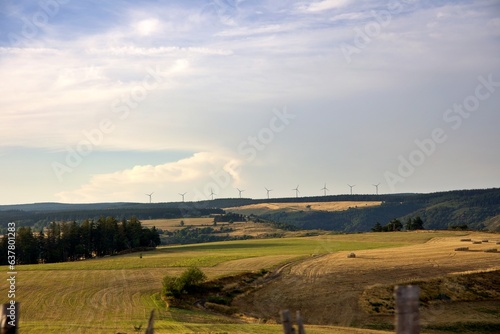 Fototapeta premium Éolienne électricité prairie paysage sécheresse été soleil