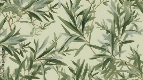 © Misra, Fototapeta premium Olive Branch Watercolor Painting Green Leaves Background