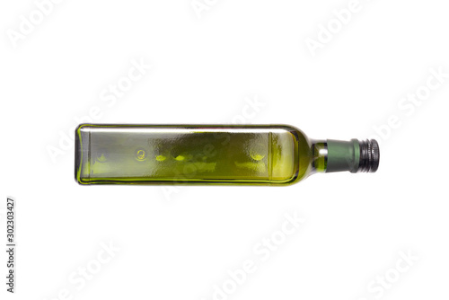 © Natali, Fototapeta premium Olive cooking oil green bottle isolated on white background.