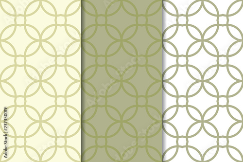 Fototapeta premium Olive green and white geometric set of seamless patterns