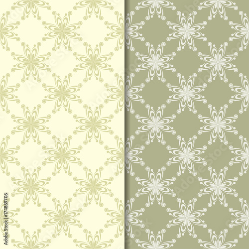 © Liudmyla, Fototapeta premium Olive green floral backgrounds. Set of seamless patterns