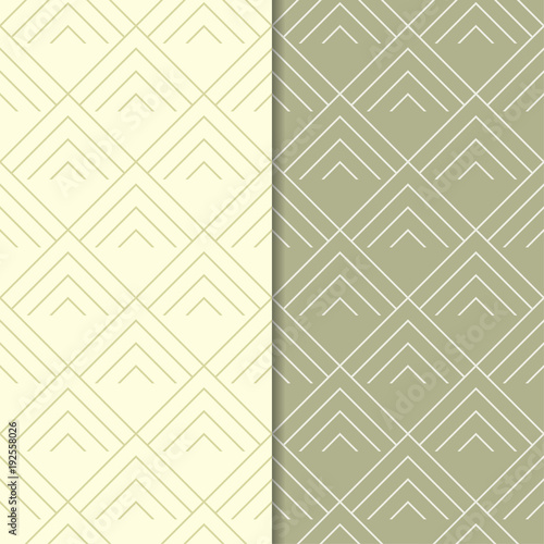 Fototapeta premium Olive green geometric ornaments. Set of seamless patterns